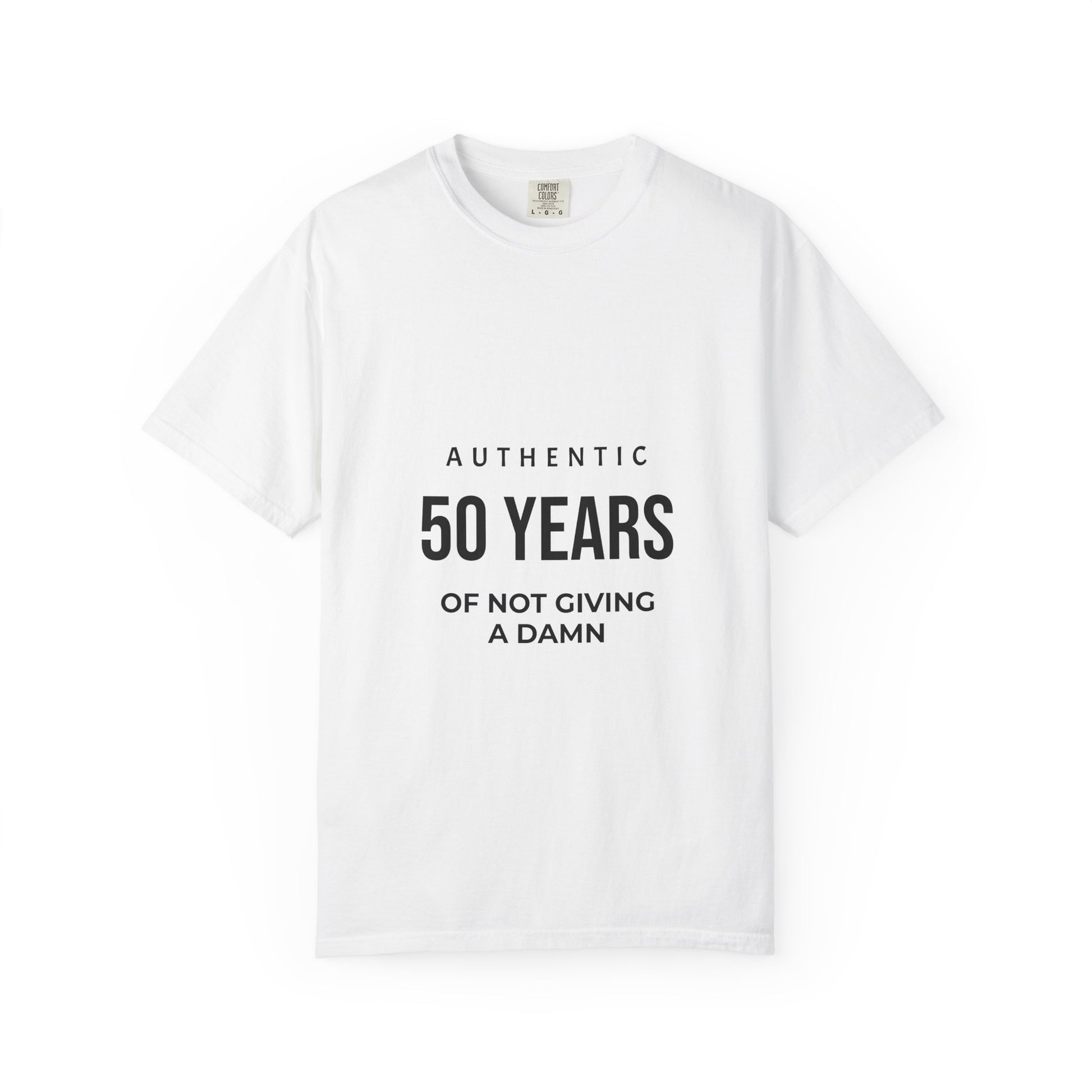 This heavyweight, garment-dyed tee carries a laid-back, confident voice: a simple front print reads “AUTHENTIC 50 YEARS OF NOT GIVING A DAMN,” letting the wearer celebrate milestone attitude with quiet humor. The dense 100% ring-spun cotton and tubular construction give the shirt a soft, substantial hand and clean silhouette that ages beautifully. It sits relaxed on the body, holds shape after washing, and comes in many colors to match whatever mood you — or the birthday rebel in your life — are in. Wear it to backyard barbecues, low-key milestone parties, or on slow mornings when comfort and a sly grin are the point.